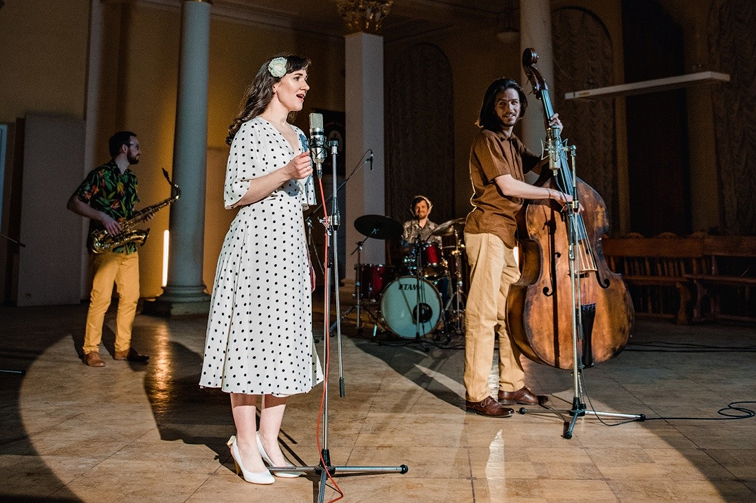 Лауреаты международных конкурсов Александра Куркова (вокал), Дмитрий Васильев (вокал, контрабас, гитара), Вадим Анцыгин (фортепиано), Денис Каверзнев (ударные)