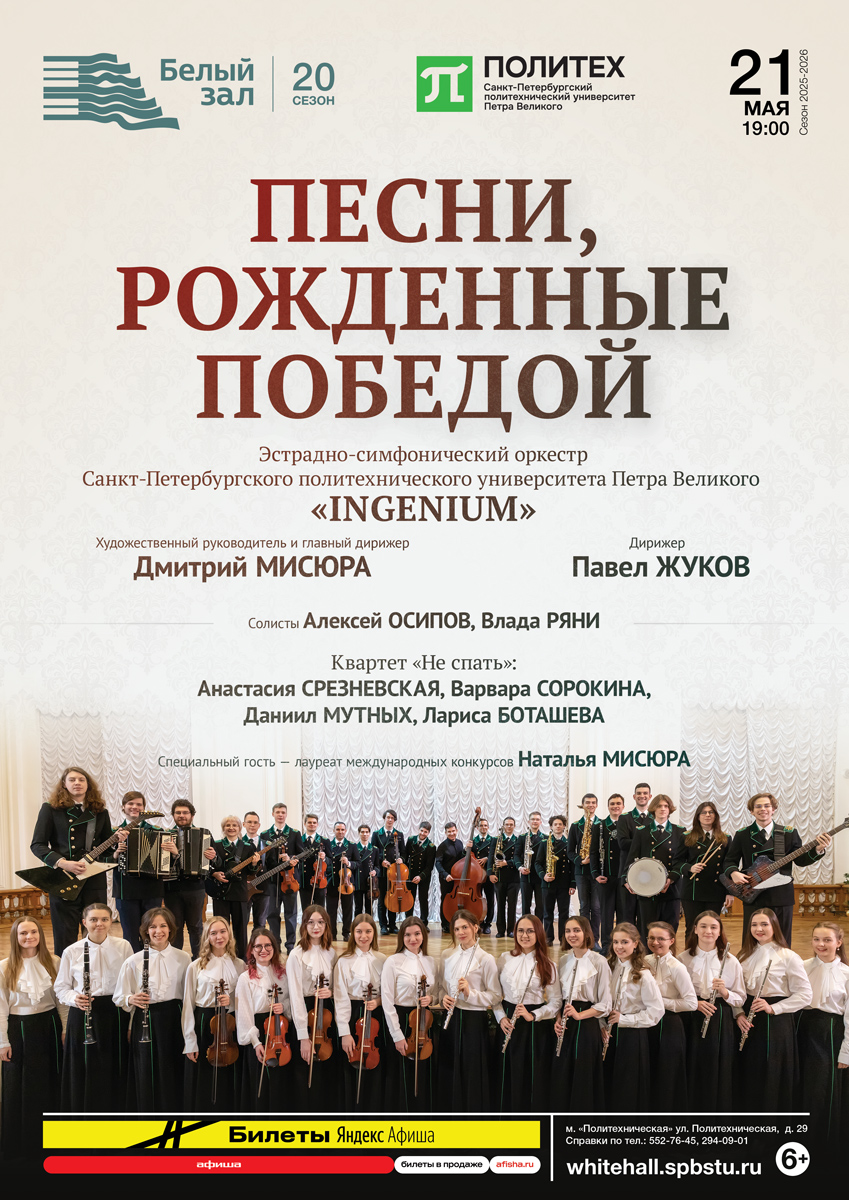 Участники концерта — Эстрадно-симфонический оркестр Санкт-Петербургского политехнического университета Петра Великого «Ингениум» и солисты вокальных коллективов Политеха. В качестве специального гостя на сцену выйдет певица Наталья Мисюра.